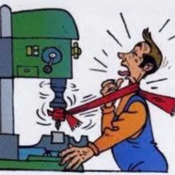 – Một vài trường hợp do không gọn gàng, nhất là công nhân khiến tóc bị cuốn vào các dây curoa hoặc quần áo bị cuốn vào máy .